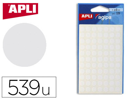 Pastille adhésive apli agipa diamètre 30mm permanente coloris blanc étui a5 384 unités
