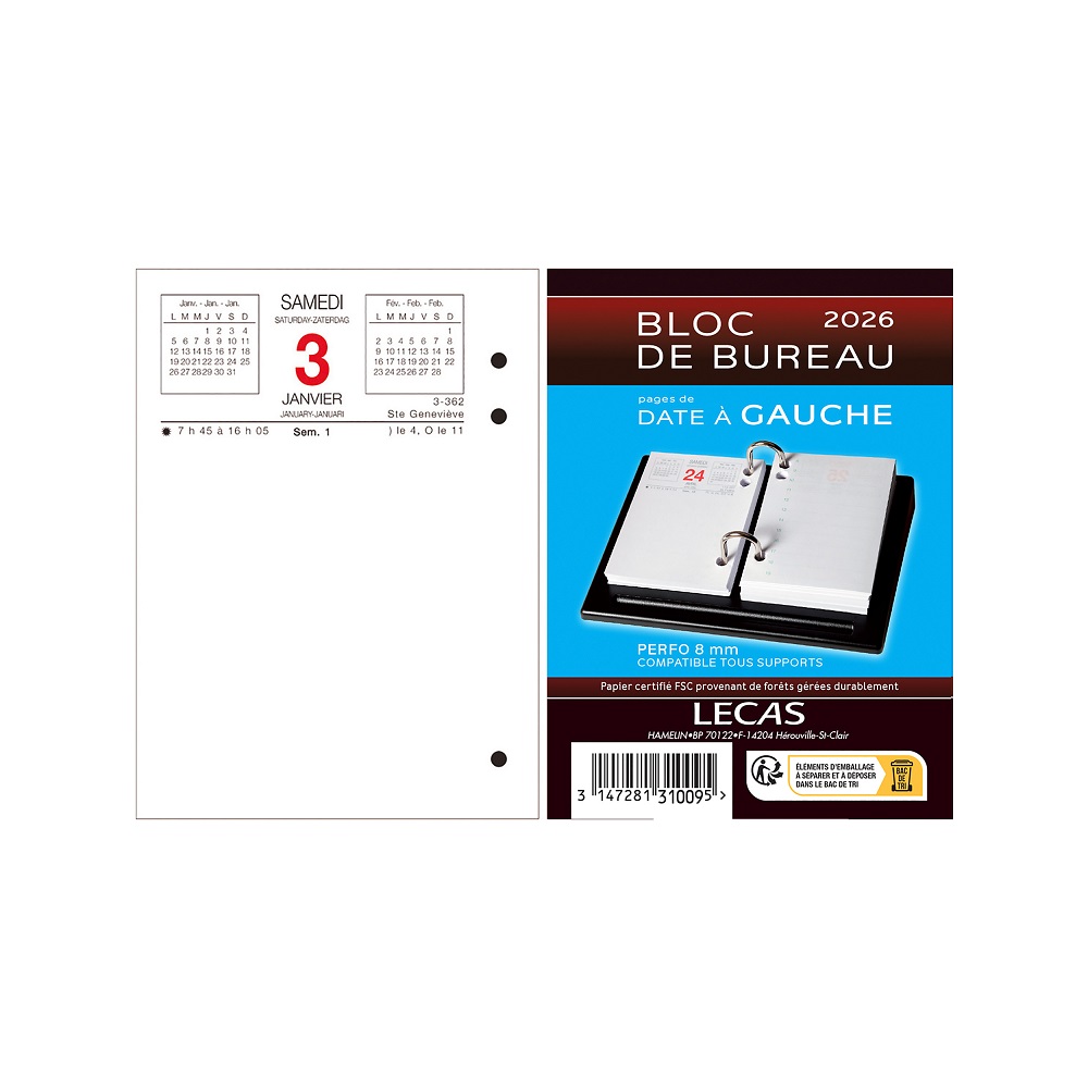 Fabriqué par Lecas, une marque réputée pour la qualité et la durabilité de ses produits de papeterie, ce calendrier est parfait pour ceux qui apprécient l'organisation et l'efficacité dans leur routine quotidienne.