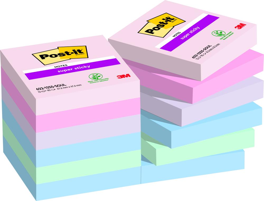 Bloc notes post-it super sticky collection soulful 76 x 76mm, 6 blocs 90 feuilles