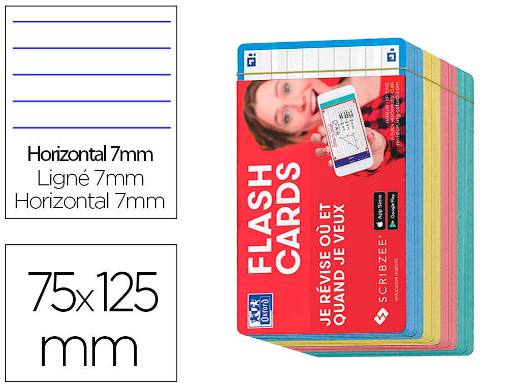 Fiches bristol oxford revision 2.0 a6 non perforee 32 fiches/film q5x5 couleurs assorties