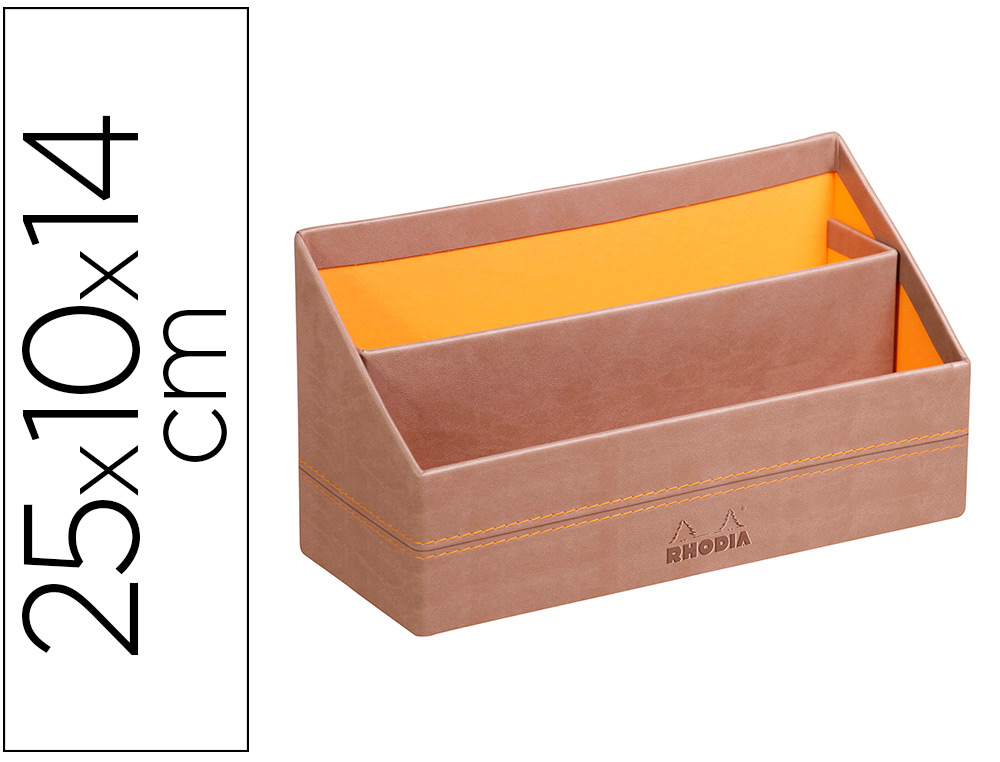 Le porte-courrier Rhodiarama est un accessoire de bureau élégant et fonctionnel conçu pour vous aider à organiser votre courrier et vos documents. Fabriqué en similicuir italien haut de gamme avec un toucher velouté, il est non seulement esthétique mais aussi durable et respectueux des vegans. Ses finitions premium, telles que le logo Rhodia embossé et les piqûres sellier orange, ajoutent une touche de sophistication à votre espace de travail.
