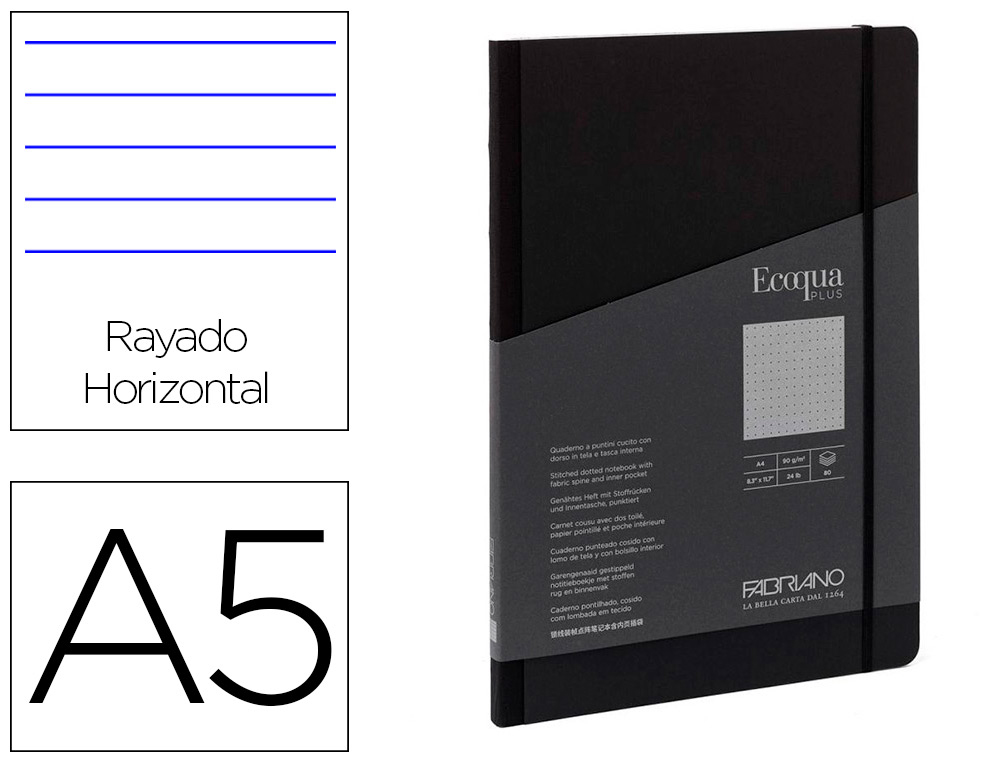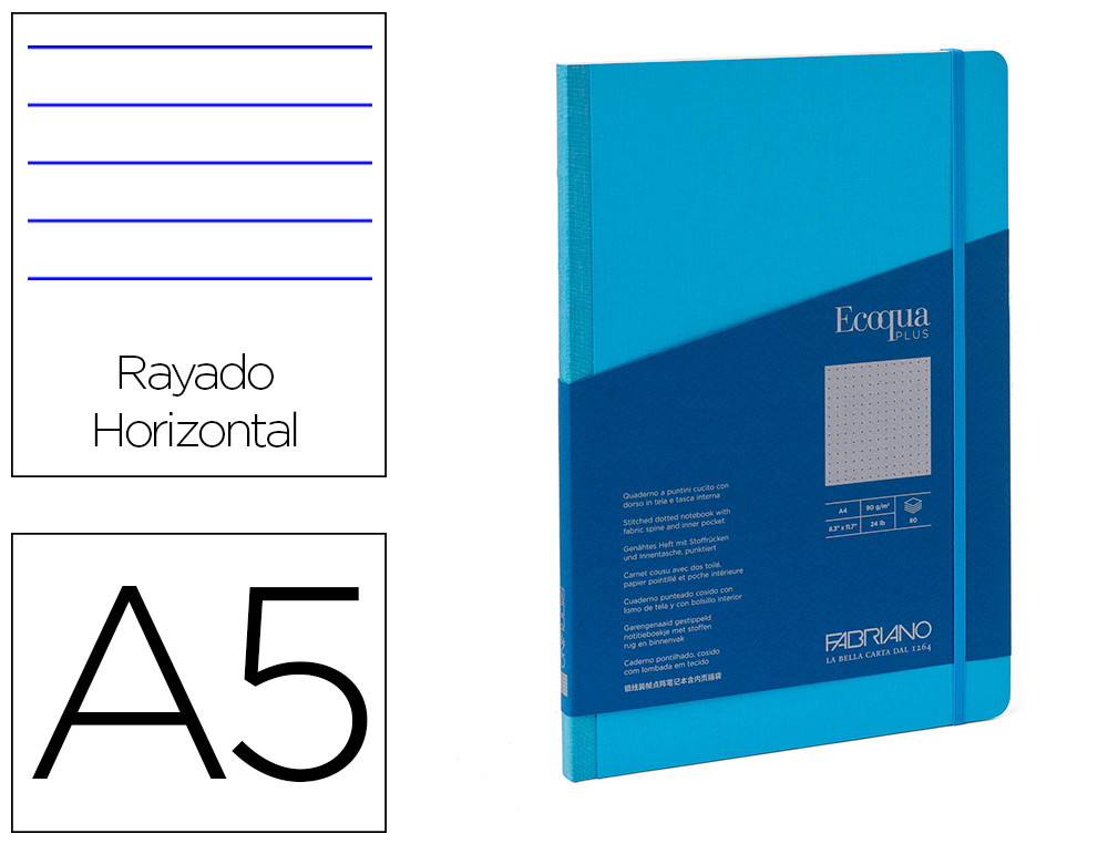 CARNET EQ PLUS FABRIANO A5 LIGNÉ BLEU MARINE 90G 80F