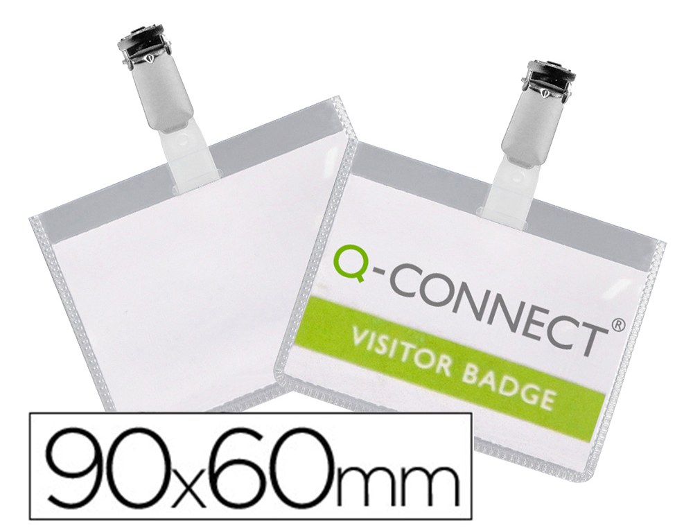 Badge q-connect clip pvc pince metallique carte blanche fournie format 60x90mm paquet 25 unites