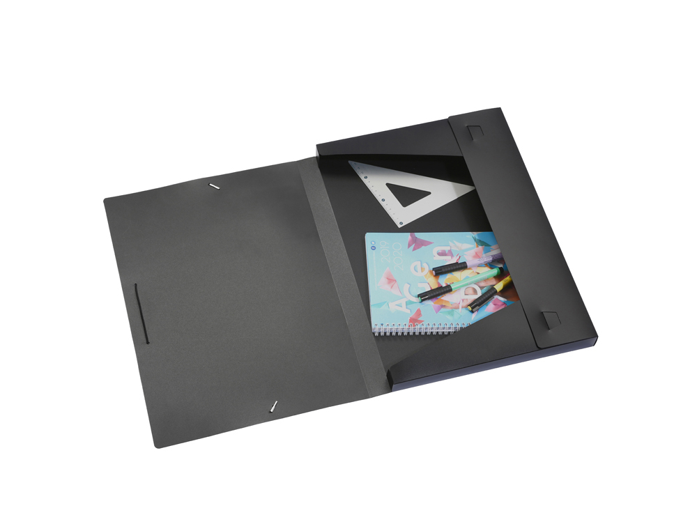 - Rabats : Dotée de 3 rabats clippés pour maintenir les documents en place.