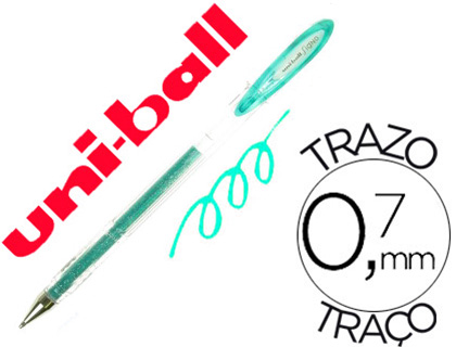 Roller uniball signo rt207 retractable encre gel plastique recycle ecriture moyenne coloris vert