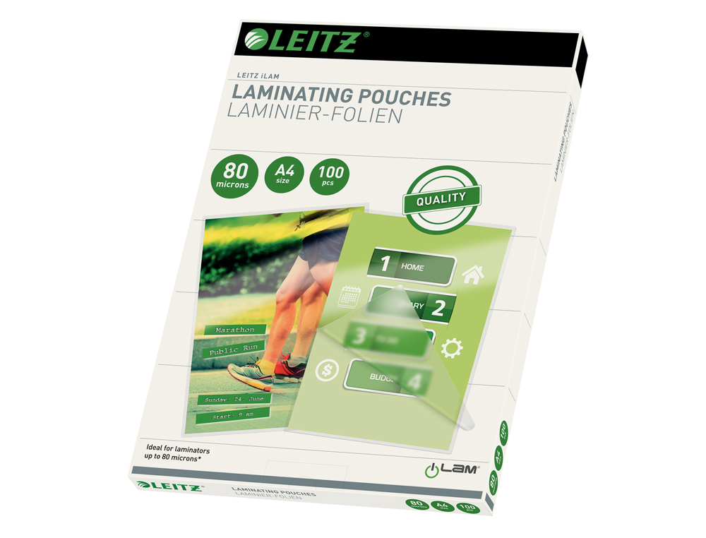Pochette plastification leitz udt a4 80 microns coloris transparent boite 100 unites
