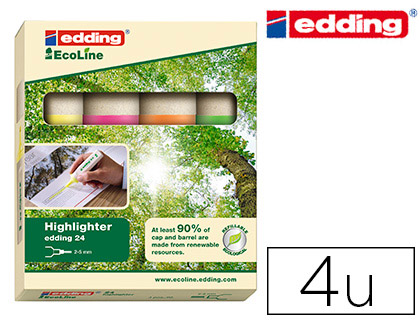 Surligneur edding 24 ecoline rechargeable pointe biseautee trace 2/5mm encre base eau coloris orange
