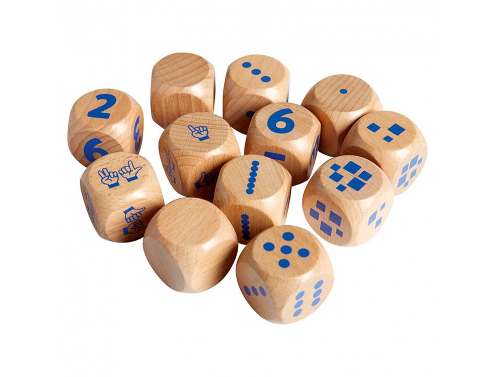 - Comprend 2 dés collections, 2 dés constellations, 4 dés doigts de la main, 2 dés chiffres et 2 dés neutres.