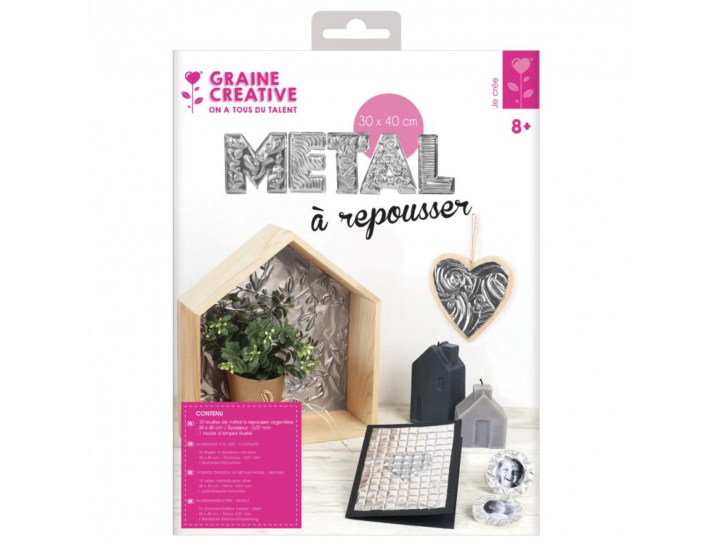 Laissez libre cours à votre créativité avec la pochette de feuilles d'aluminium métal à repousser Graine Créative, idéale pour donner vie à vos projets artistiques. Ce produit vous offre la possibilité de réaliser des dessins en relief et de sublimer vos créations avec un effet métallique élégant grâce à son coloris argent.