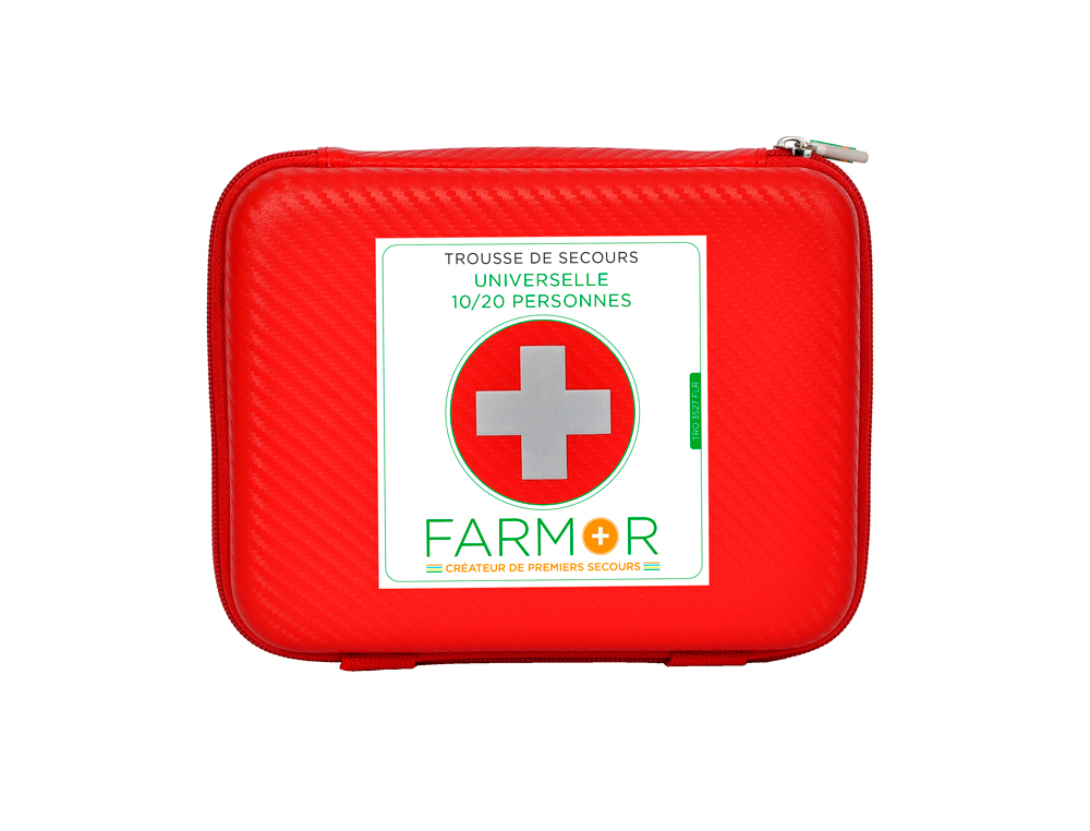 Trousse de secours farmor universelle 5 a 10 personnes multi poches de rangement coloris rouge
