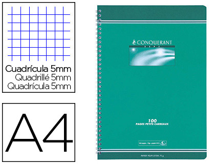Cahier conquérant sept reliure intégrale couverture offset a5+ 17x22cm 100 pages 70g 5x5mm