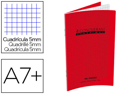 Carnet piqué conquérant sept papier surfin 70g couverture carte couchée vernie 250g 9x14cm 96 pages 5x5mm