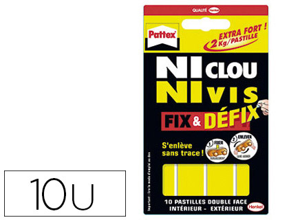 Pastille adhésive pattex ni clou ni vis double face supporte 2.75kg ultra fort étui 10 pastilles