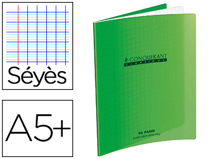 Cahier piqué conquérant classique couverture polypropylène rigide transparente a4 21x29,7cm 96 pages 90g séyès vert