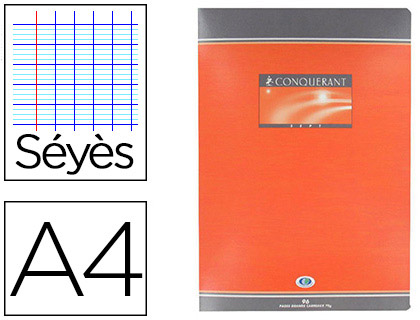 Cahier piqué conquérant sept papier recyclé encre offset base végétale a4+ 24x32cm 96 pages 70g séyès