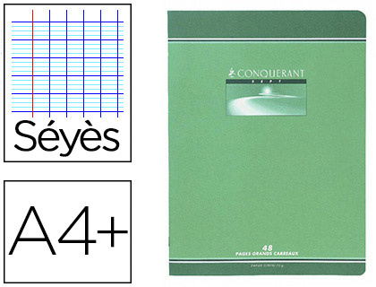 - Lignes Seyès : Doté de réglures Seyès, également connues sous le nom de grands carreaux, ce cahier facilite l'écriture et le respect des marges, un standard dans les écoles françaises.
