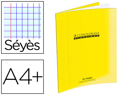 Cahier piqué conquérant classique couverture polypropylène rigide transparent a4+ 24x32cm 48 pages 90g séyès violet