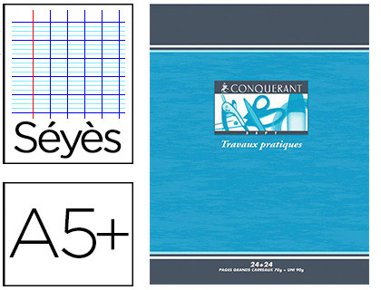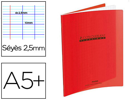 Cahier piqué conquérant écriture couverture offset a5+ 17x22cm 32 pages 70g double ligne 2mm interligne verticale