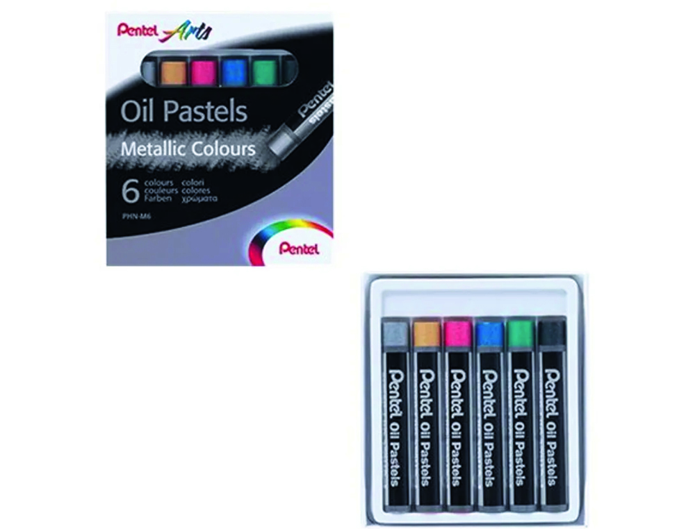 Pastel huile pentel corps rondenrobage papier non salissant diametre 8mm coloris metalliseet fluo assortis boite 12 uni