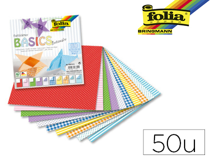 Feuille papier folia pliage 80g/m2 150x150mm pour enfants 10 motifs assortis paquet 50 unités