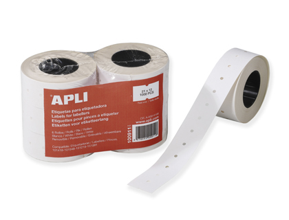Étiquette apli agipa pour pince permanente format 21x12mm coloris blanc rouleau 1000 unités lot de 6