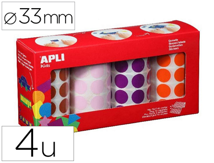 - Conditionnement : Pack de 4 rouleaux, chacun comprenant 1410 gommettes.