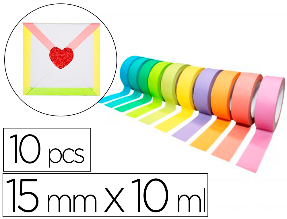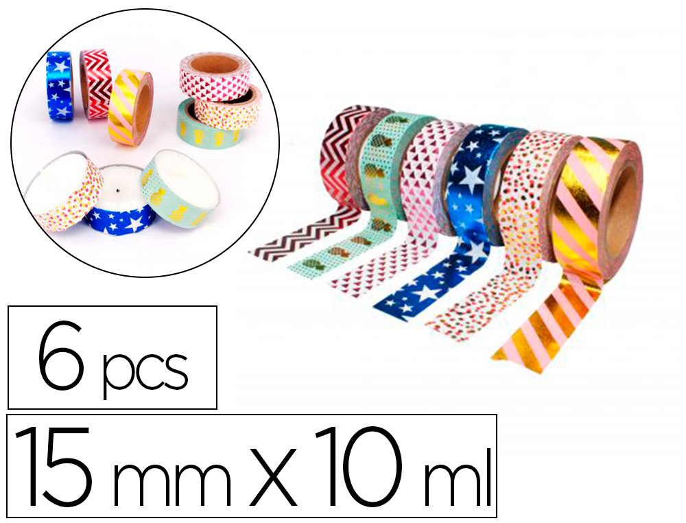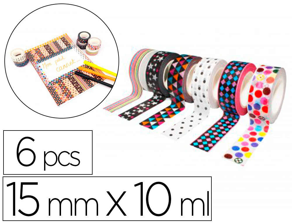 - Dimensions et Quantité : Chaque ruban mesure 15 mm de largeur et 10 m de longueur. Le pack comprend 6 rubans, offrant une variété suffisante pour diverses utilisations.