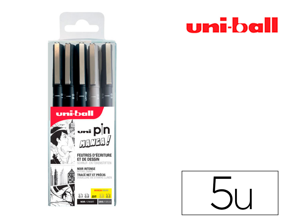 Pochette 5 feutres techniques uniball pin pointe calibrée o,05mm/0,2m/0,4mm/0,5mm/0,7mm encre noire tracé net et précis