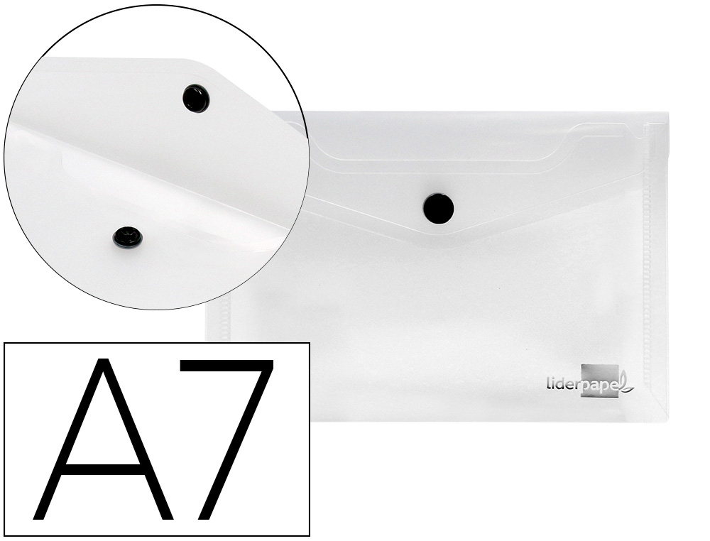Pochette enveloppe liderpapel polypropylène 180 microns a6 148x105mm 50f fermeture bouton transparent